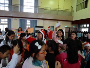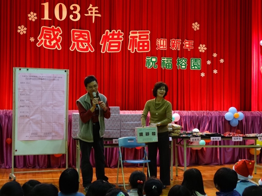 活動尾聲是孩子們最期待的「祝福滿滿」及「溫情滿人間」。由校長、家長會會長領軍的家長們扮演背著禮物袋的耶誕老人,紅衣紅帽白鬍子的造型一出場,隨即掀起活動的最高潮。從耶誕老人手中接到老師、同學們致贈的卡片、棉花糖,傳遞著祝福與關懷,孩子們的歡呼聲也此起彼落,整個會場沉浸在溫馨的氣氛中,久久不散。