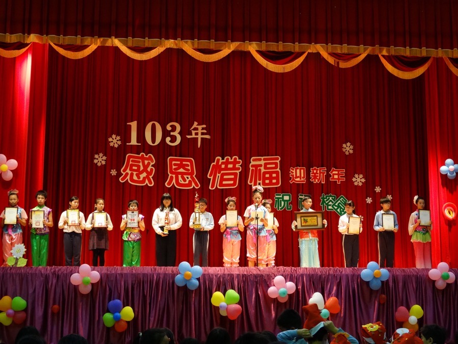 接著小市長帶領六年級學生代表上台呈現學校各項競賽獎牌及獎勵,並表達對學校栽培的感恩之情時,在場的親師生莫不報以熱烈的掌聲。